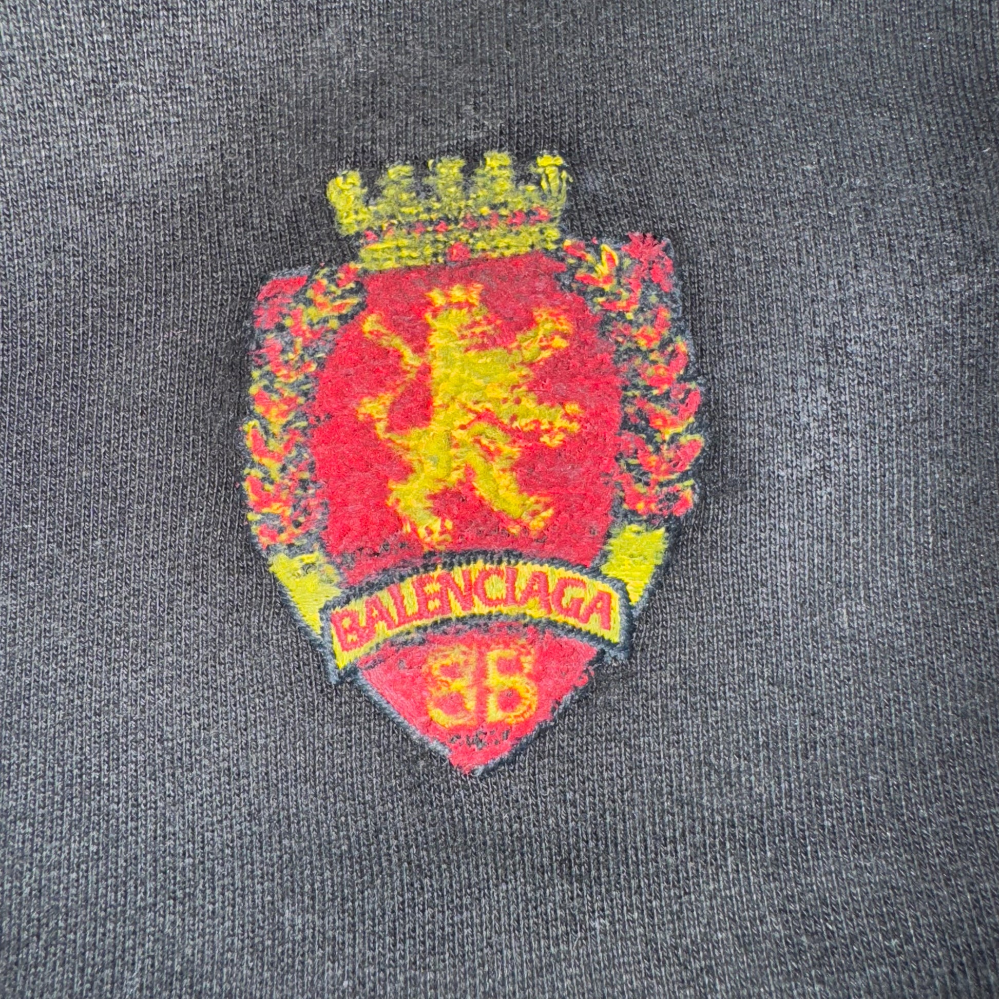 • Textured collegiate “Balenciaga” chenille patch across chest