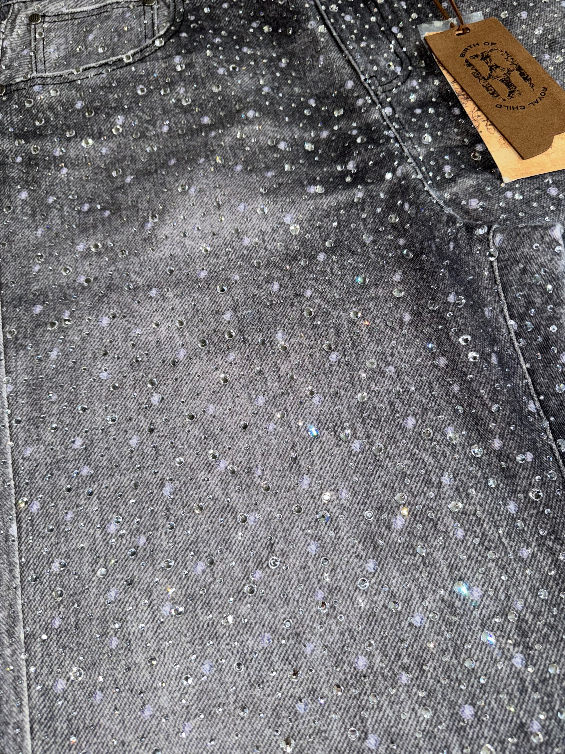 Birth Of Royal Child 3D Printing Washed 20k Swarovski Diamond Boro Denim Black