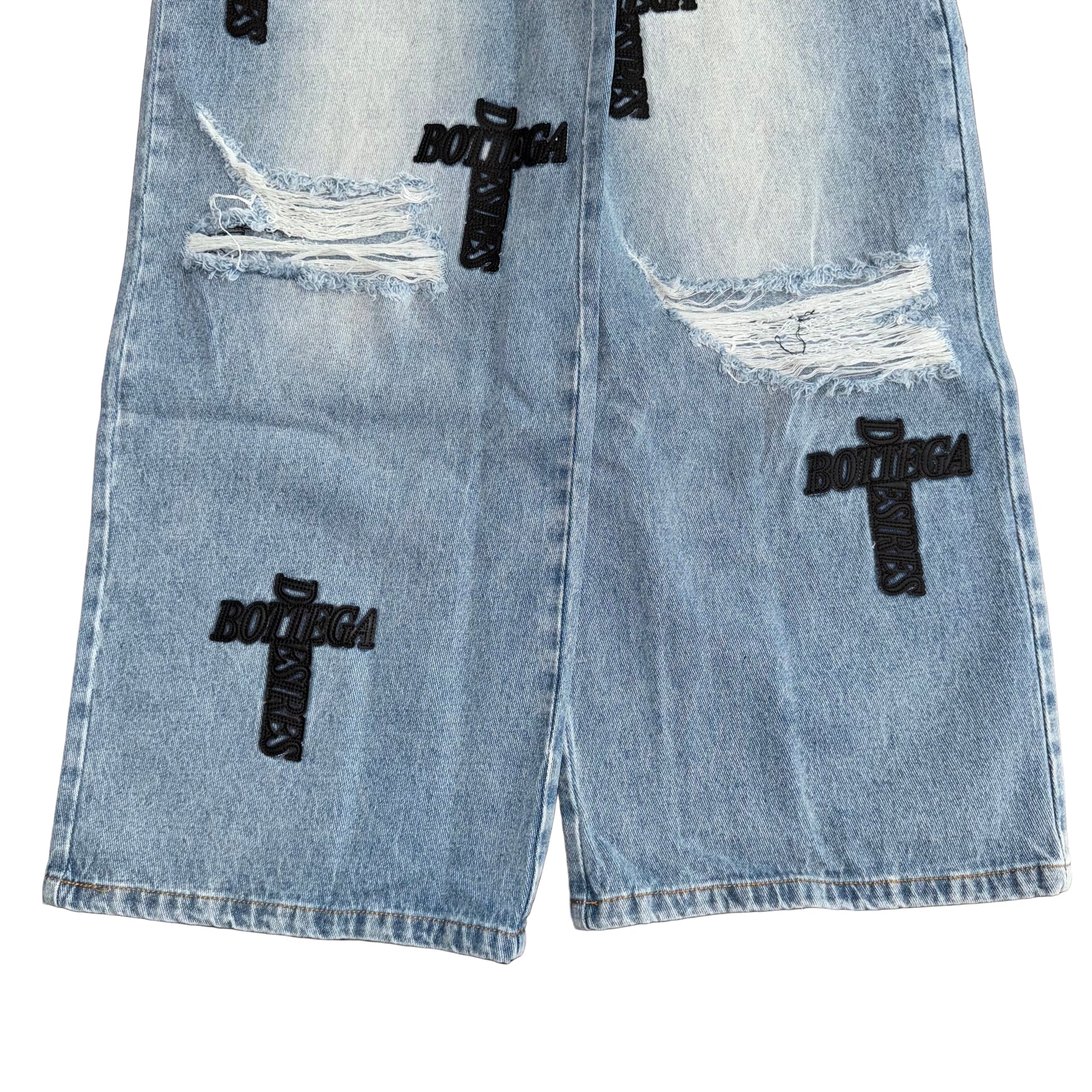 • Signature Bottega Desires denim featuring all-over “Holy Grail” cross embroidery