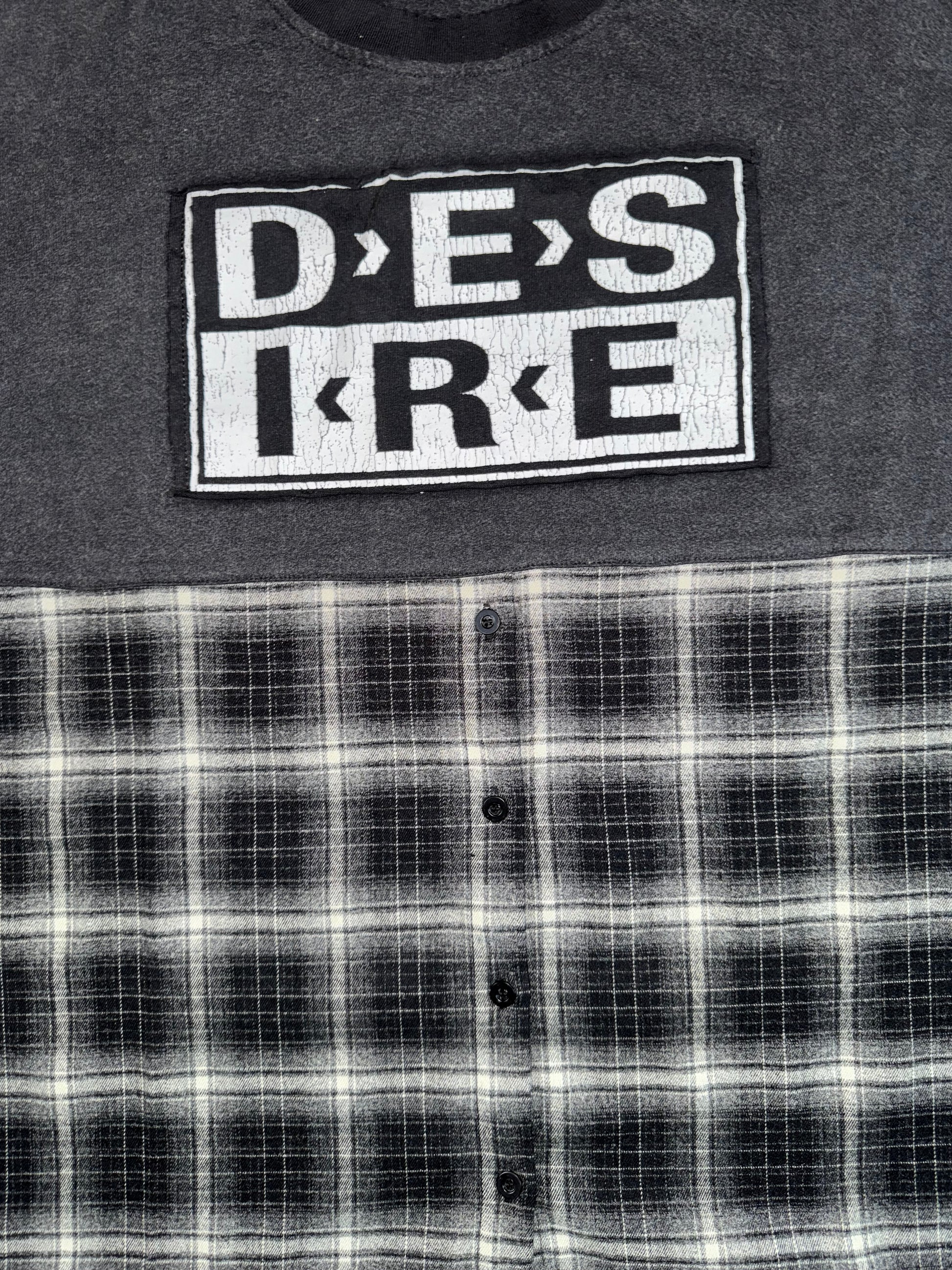 • Snap-style detailing on the flannel panel for a layered, reconstructed look