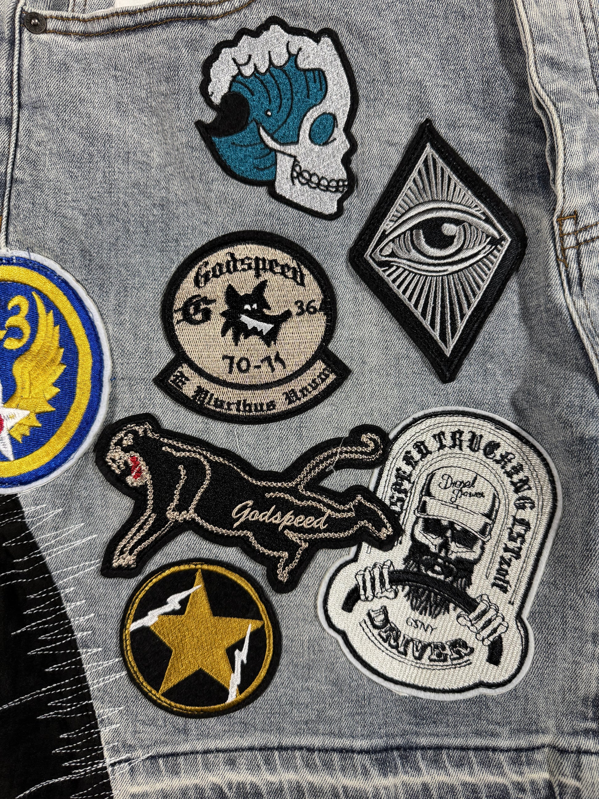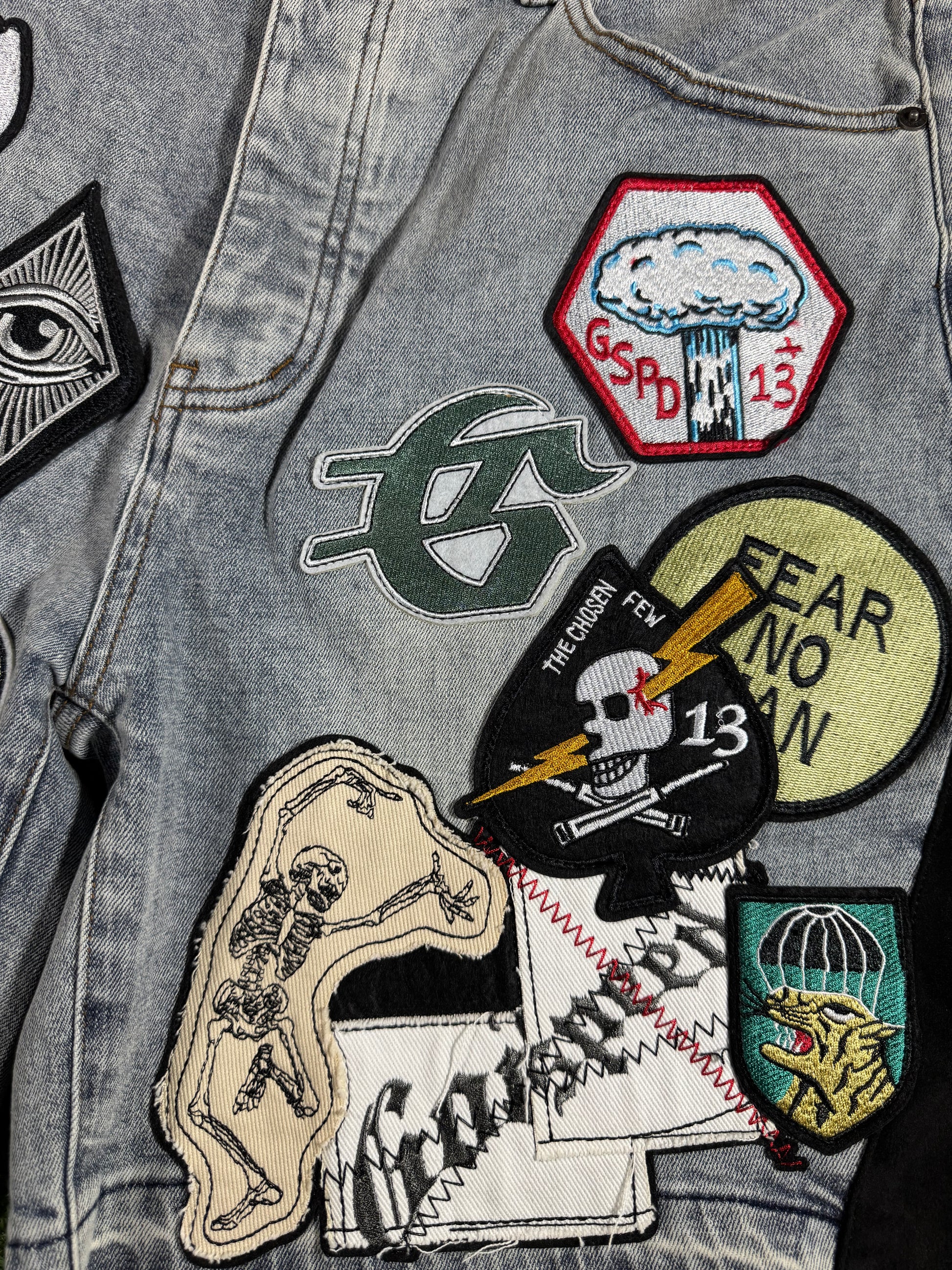 • Heavy multi-patch appliqué featuring custom Godspeed insignias, skulls, panther, and Fear No Man graphics