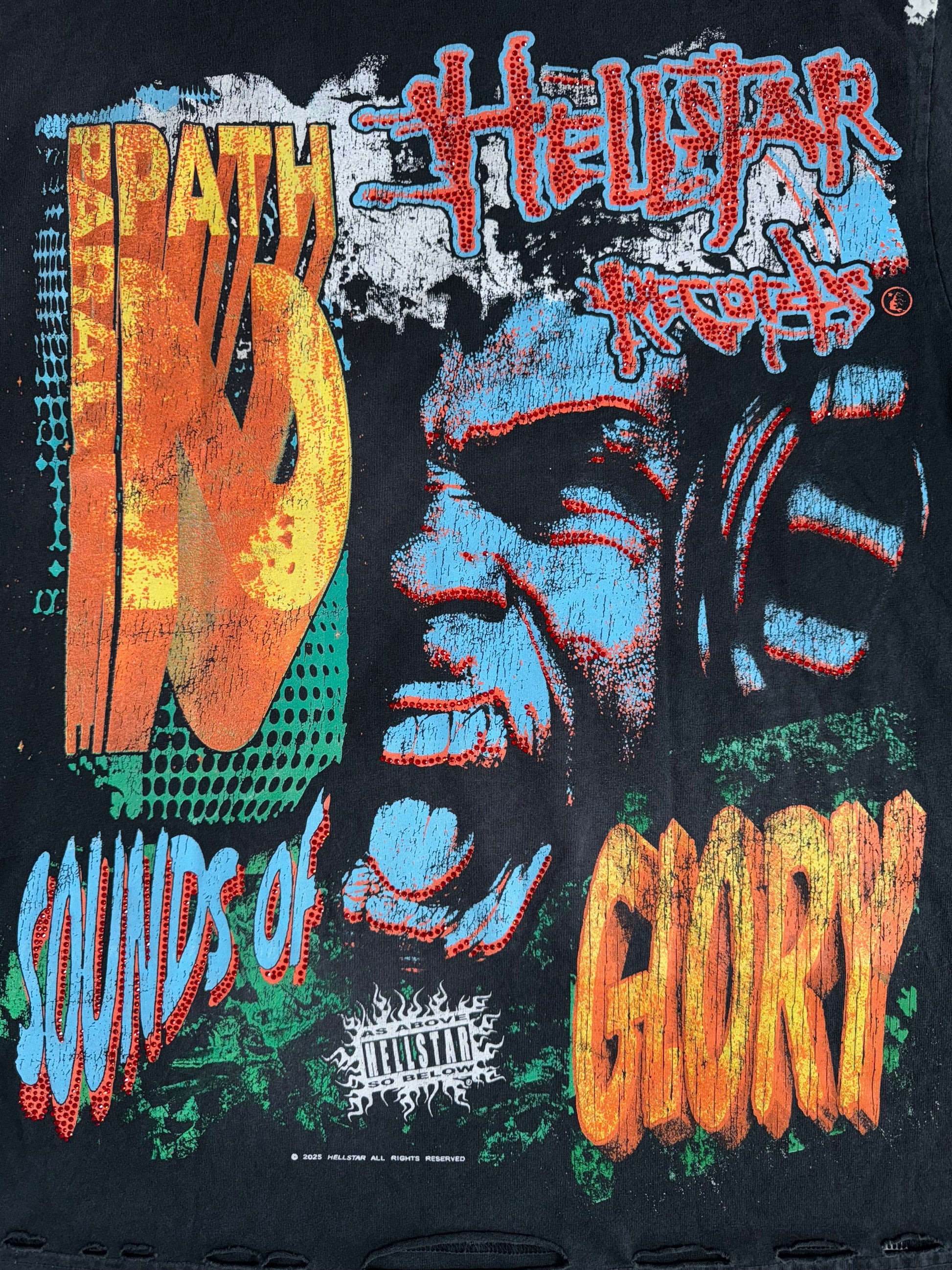 • Reverse side displays monochrome “Sounds of Glory” design with distressed Hellstar Records logo