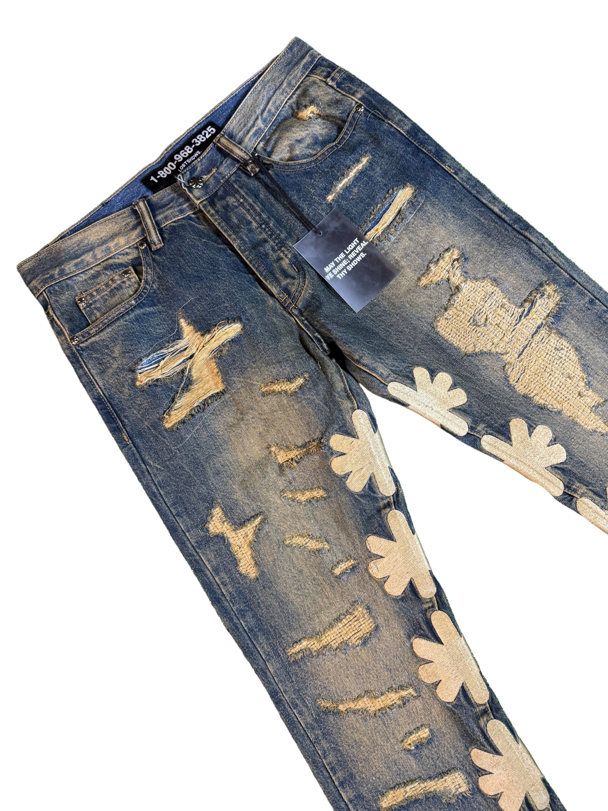• Hand-distressed rips and abrasions give each pair a unique worn-in look