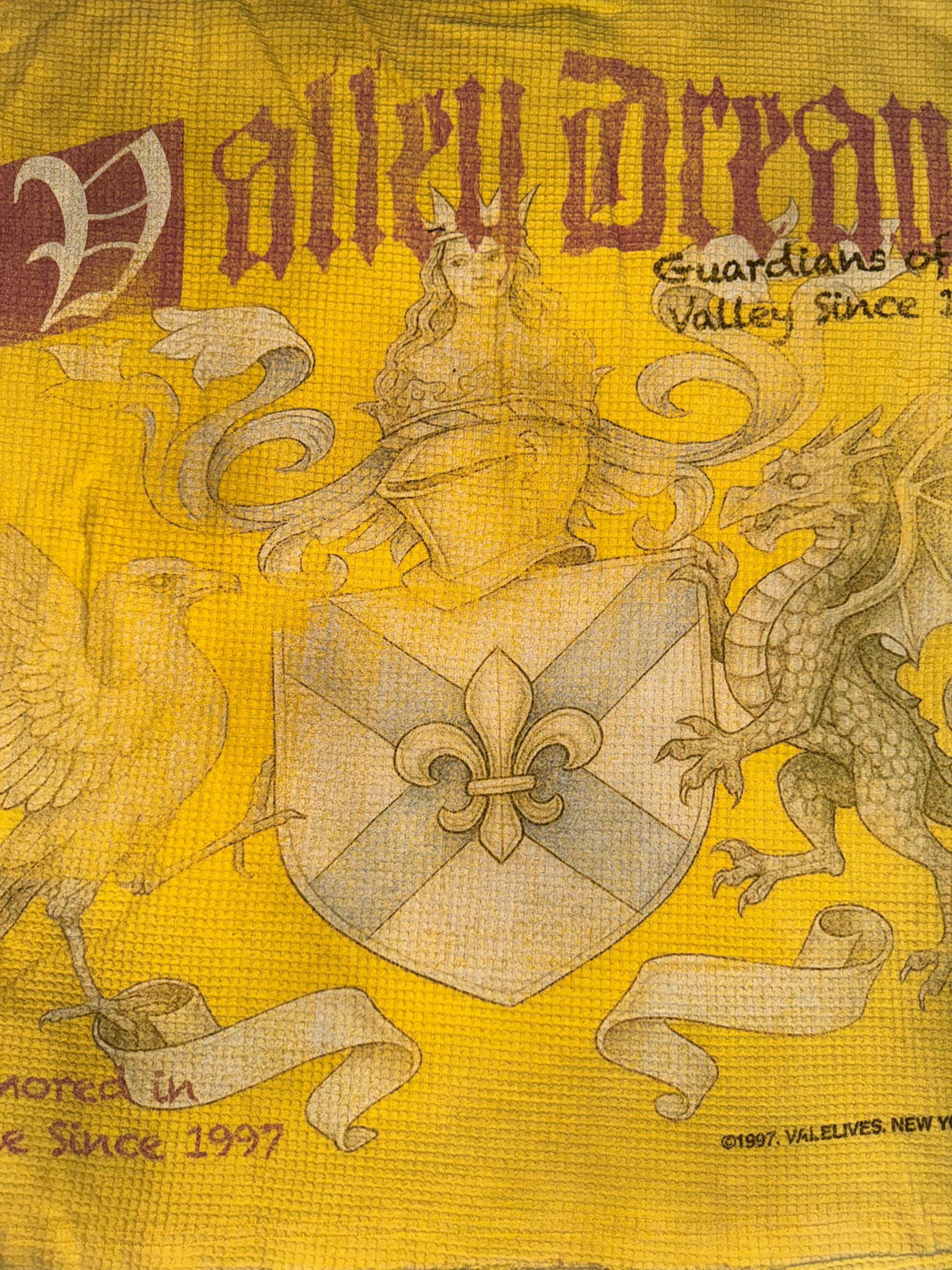 • Celestial + medieval crest graphics printed across front, back, and sleeves