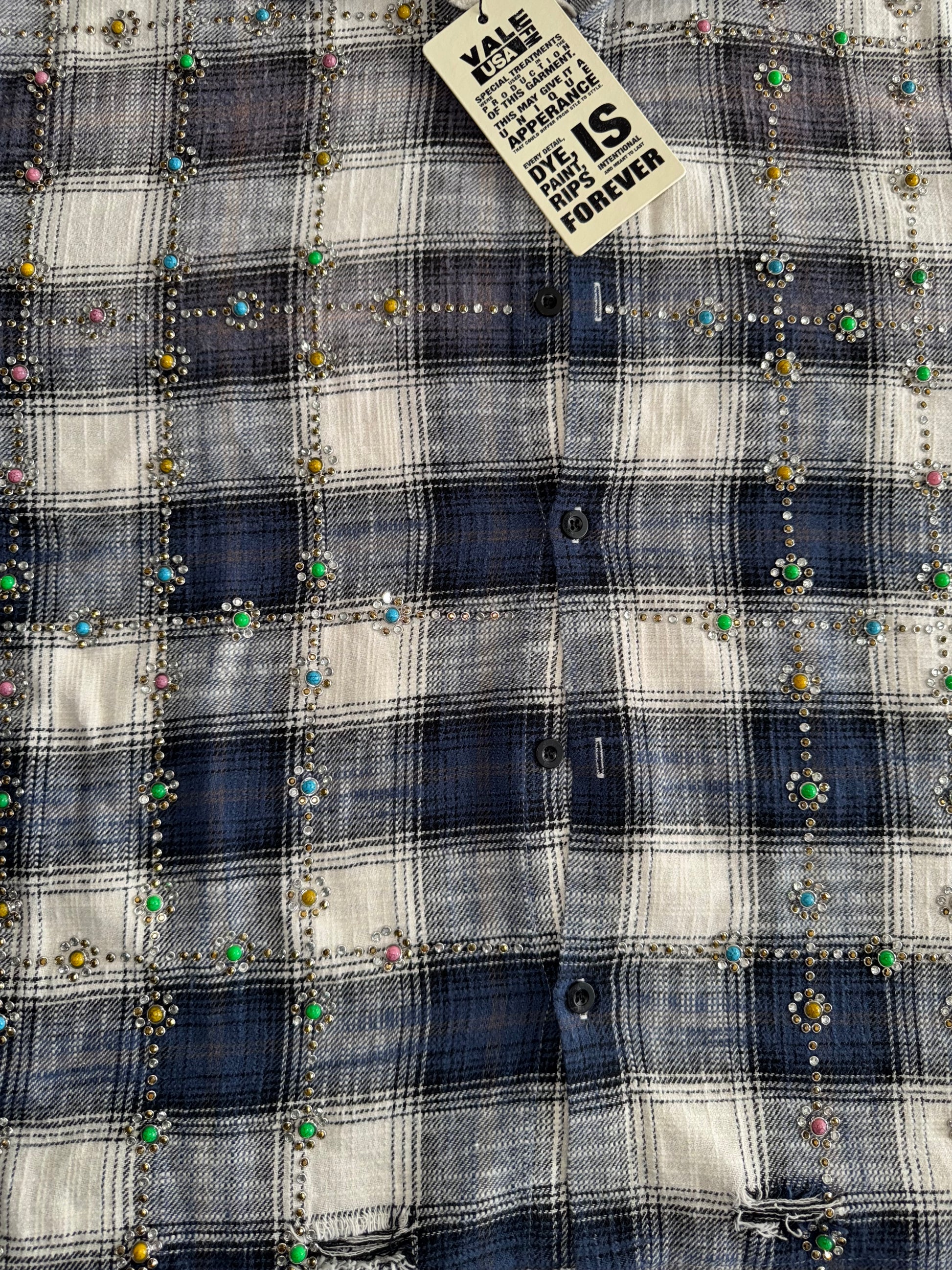 • Premium plaid flannel shirt featuring all-over Sky Gems rhinestone embellishments