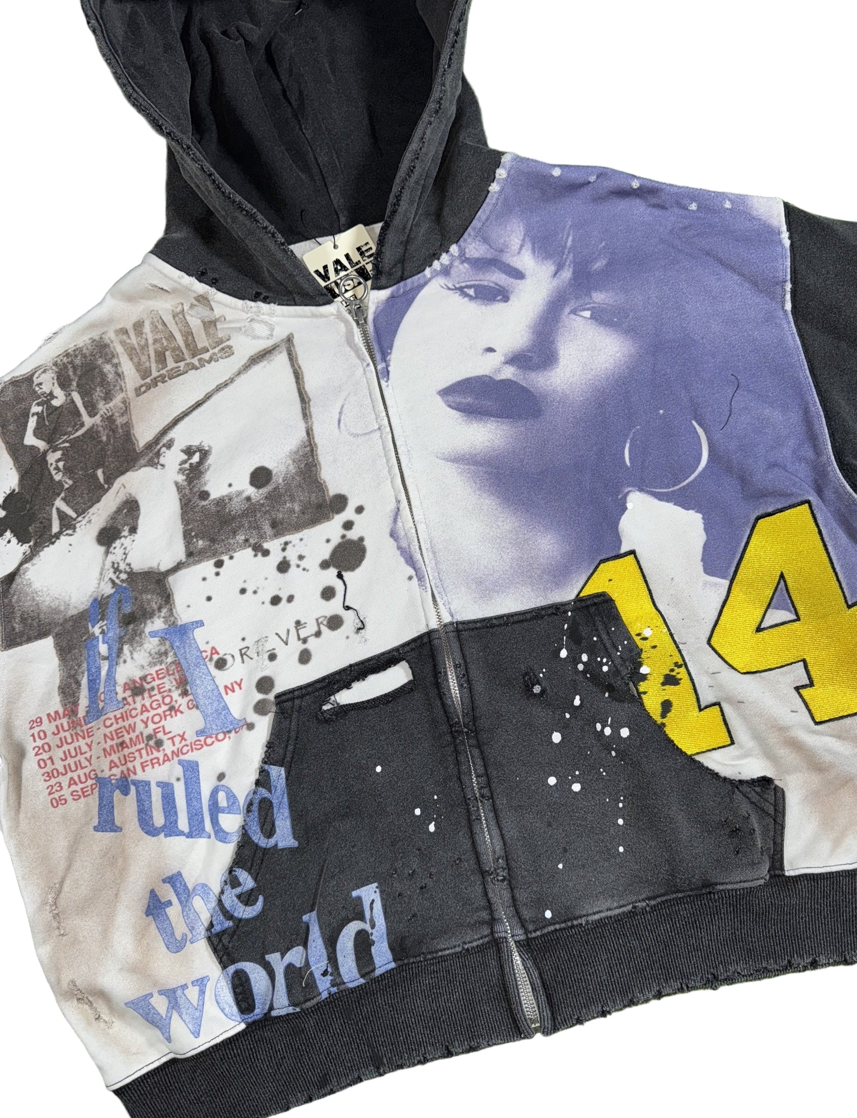 • Multi-panel zip-up hoodie featuring mixed Selena graphics throughout